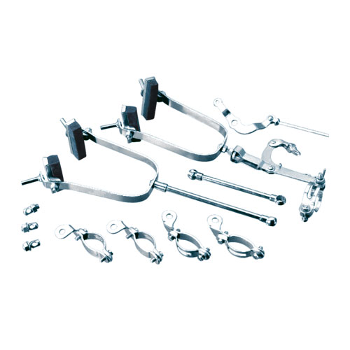 (A) Front Stirrup with Tube & Brake Shoe. (B) Rear Stirrup with Adjustable Bolt & Bottom Leg Unit with Clip & Spring. (C) Rear Brake Tube with Screw. (D) Brake Clip Front with Screw & Nut (E) Brake Clip rear with screw Nut (F) Clip fastening ‘L’ shape top bell crank lever (G) Brake Button with Nut & Washer (H) Rear Brake Long Connecting Rod
